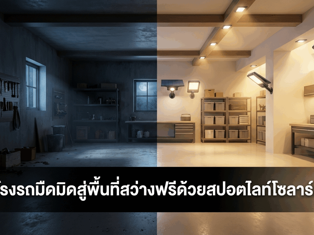 จากโรงจอดรถมืดทึบสู่พื้นที่สว่างฟรีด้วยสปอร์ตไลท์โซล่าเซลล์